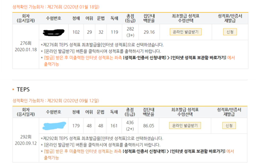 | 수강후 | 179점 | 48점 | 48점 | 161점 | 436점 |