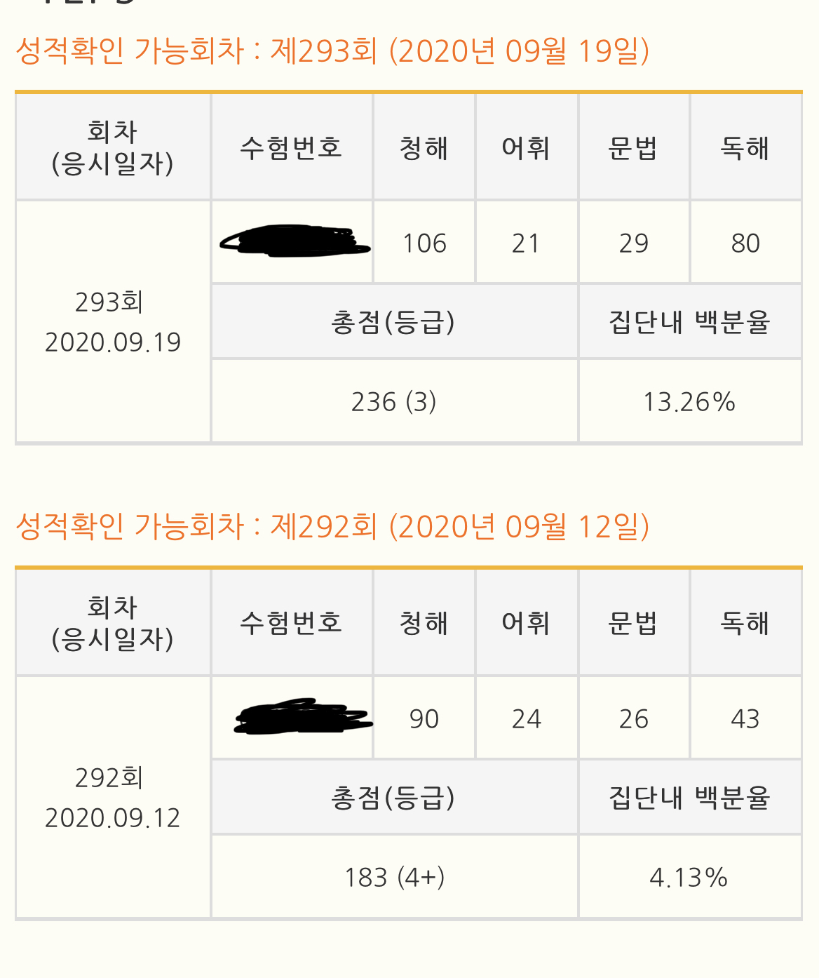 청해(240점) 어휘(60점) 문법(60점) 독해(240점) 총점(600점)