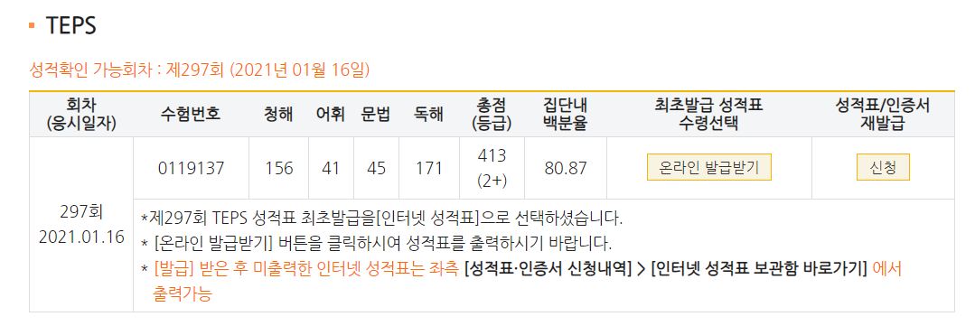| 총점(600점) | 334점 | 413점 |