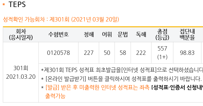 청해(240점) 어휘(60점) 문법(60점) 독해(240점) 총점(600점)
