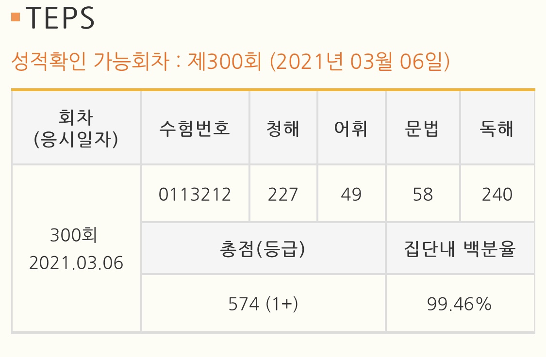 | 수강후 | 227점 | 49점 | 58점 | 240점 | 574점 |
