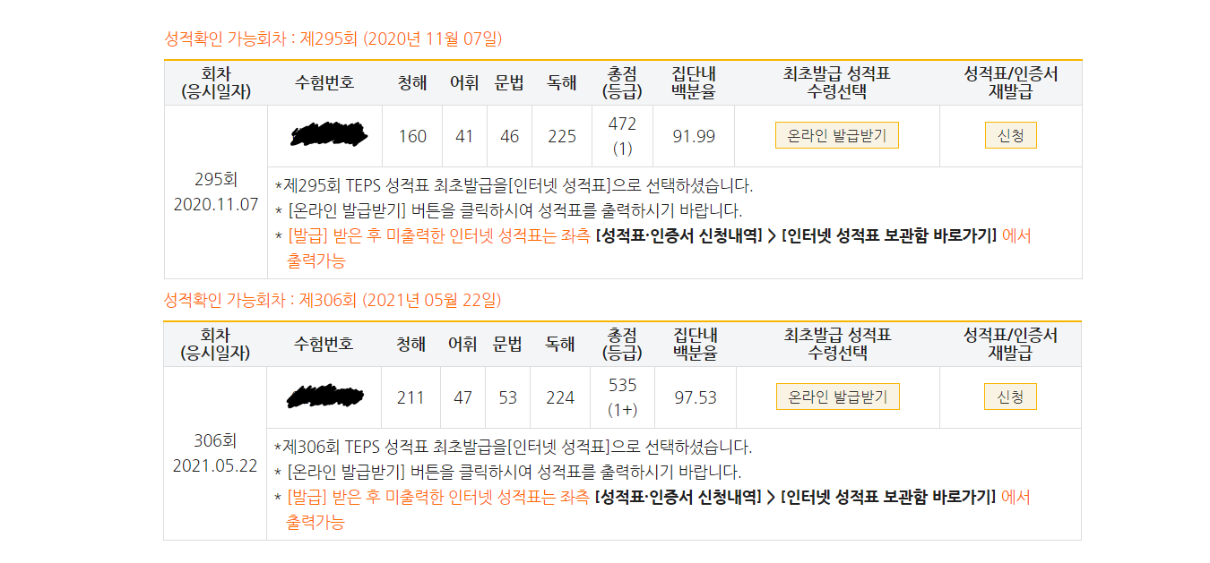 | 총점(600점) | 472점 | 535점 |