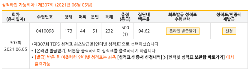 청해(240점) 어휘(60점) 문법(60점) 독해(240점) 총점(600점)