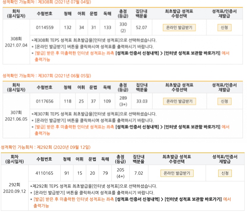 | 청해(240점) | 어휘(60점) | 문법(60점) | 독해(240점) | 총점(600점) | |