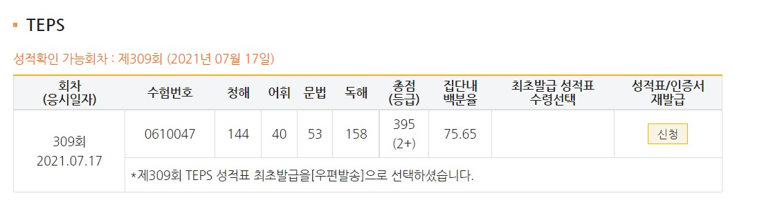 | 수강후 | 144점 | 40점 | 53점 | 158점 | 395점 |