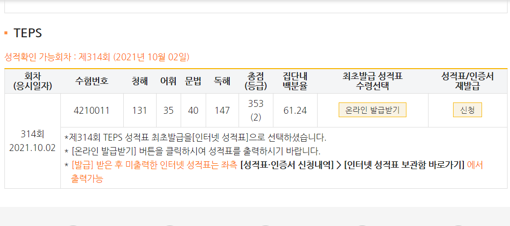청해(240점) 어휘(60점) 문법(60점) 독해(240점) 총점(600점)