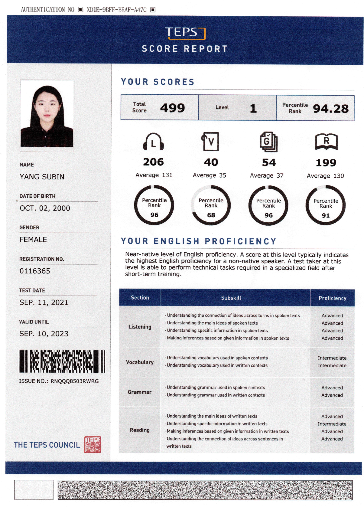 수강후 | 206점 | 40점 | 54점 | 199점 | 499점 |