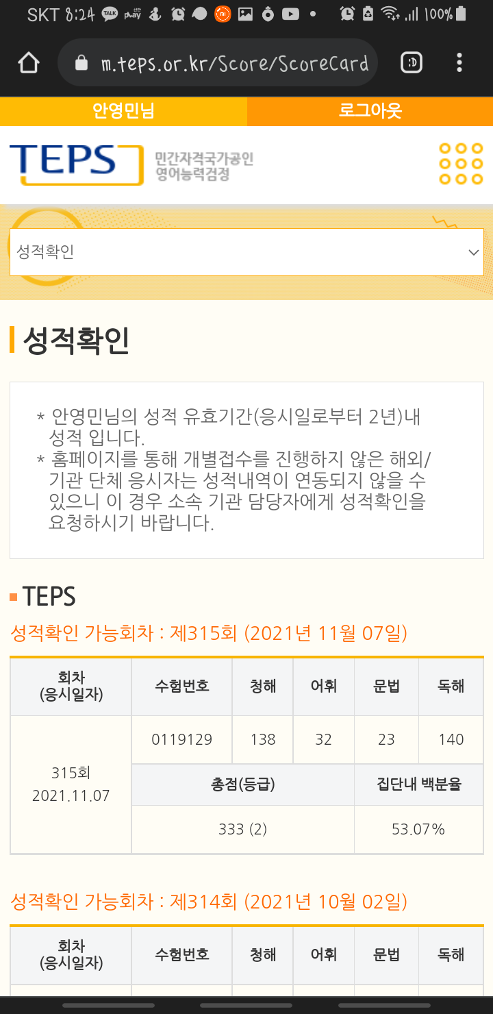 | 수강후 | 138점 | 32점 | 23점 | 140점 | 333점 |