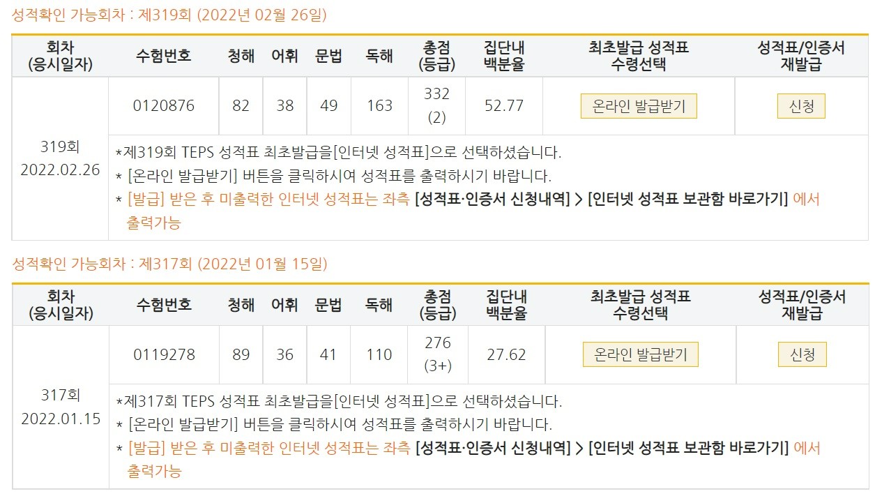 | 청해(240점) | 어휘(60점) | 문법(60점) | 독해(240점) | 총점(600점) | |