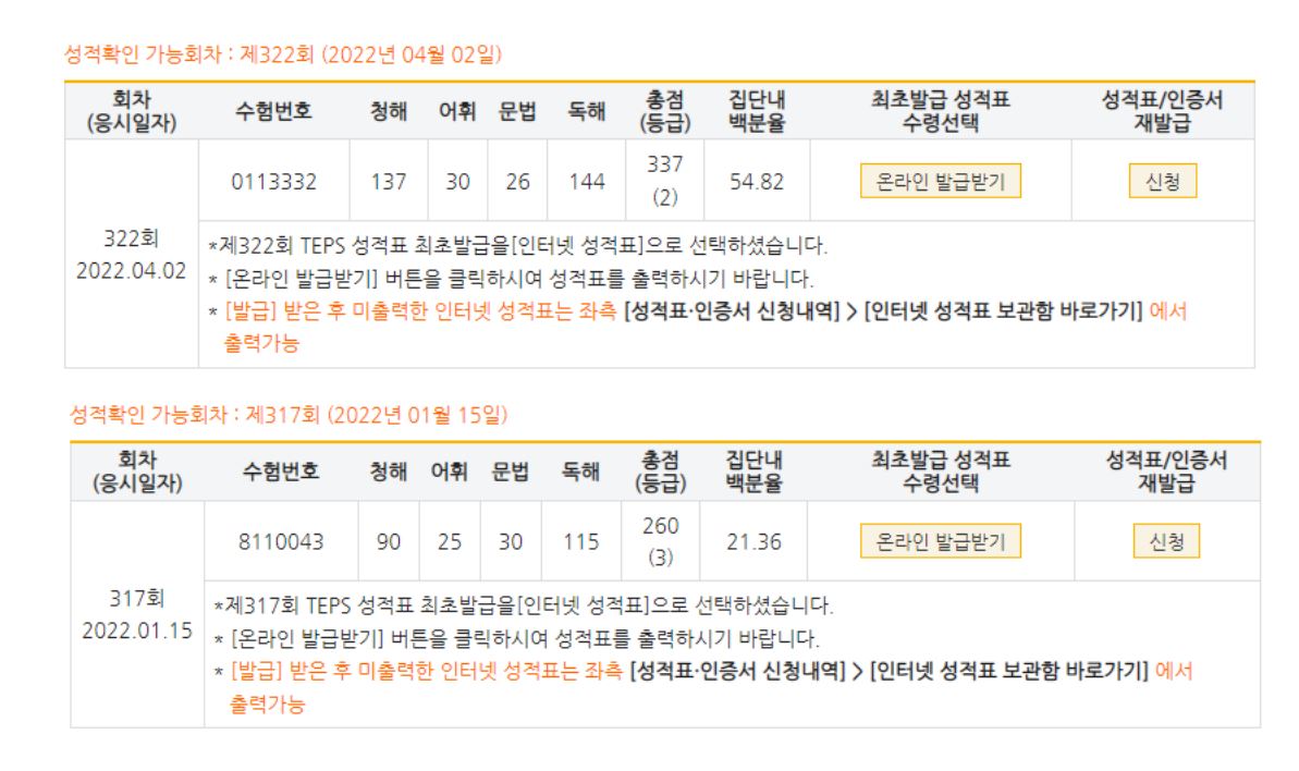 간절한 노력으로 대학원 원서날 TEPS 성적 충족