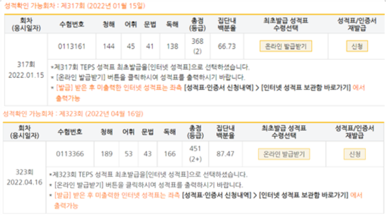 청해(240점) 어휘(60점) 문법(60점) 독해(240점) 총점(600점)