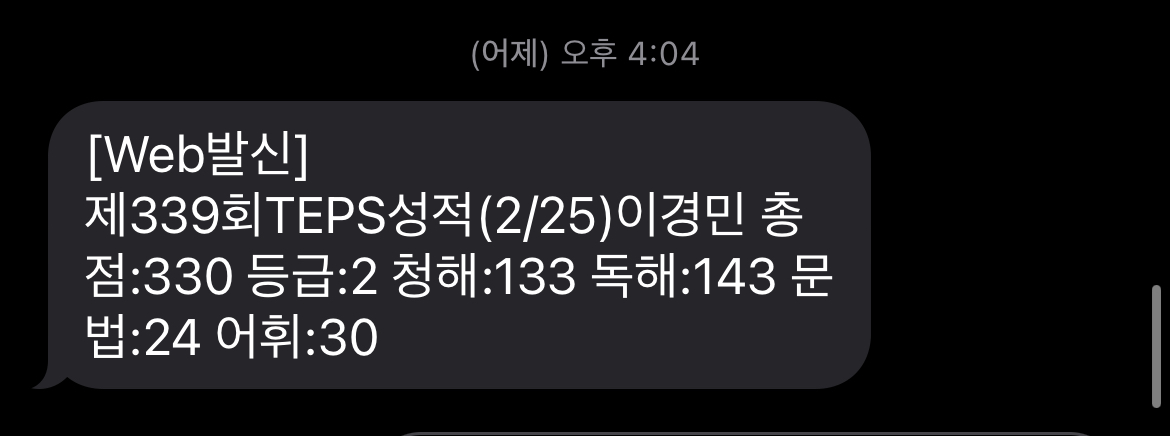 | 수강후 | 133점 | 30점 | 24점 | 143점 | 330점 |