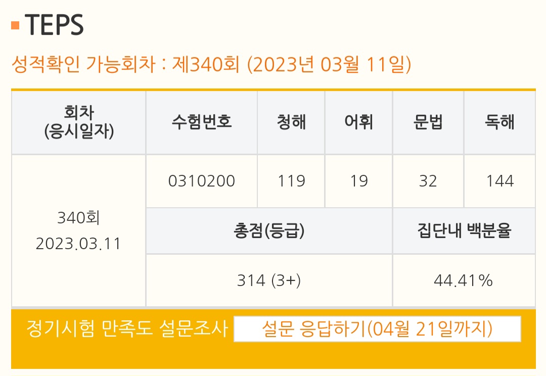 청해(240점) 어휘(60점) 문법(60점) 독해(240점) 총점(600점)
