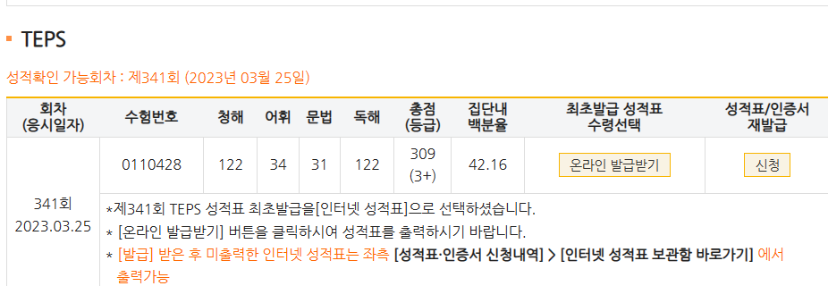 | 수강후 | 122점 | 34점 | 31점 | 122점 | 309점 |