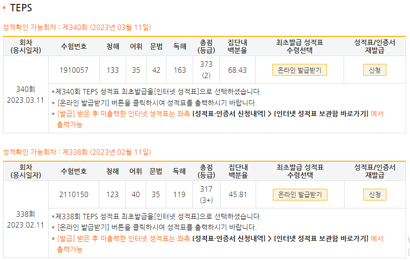 | 총점(600점) | 317점 | 373점 |