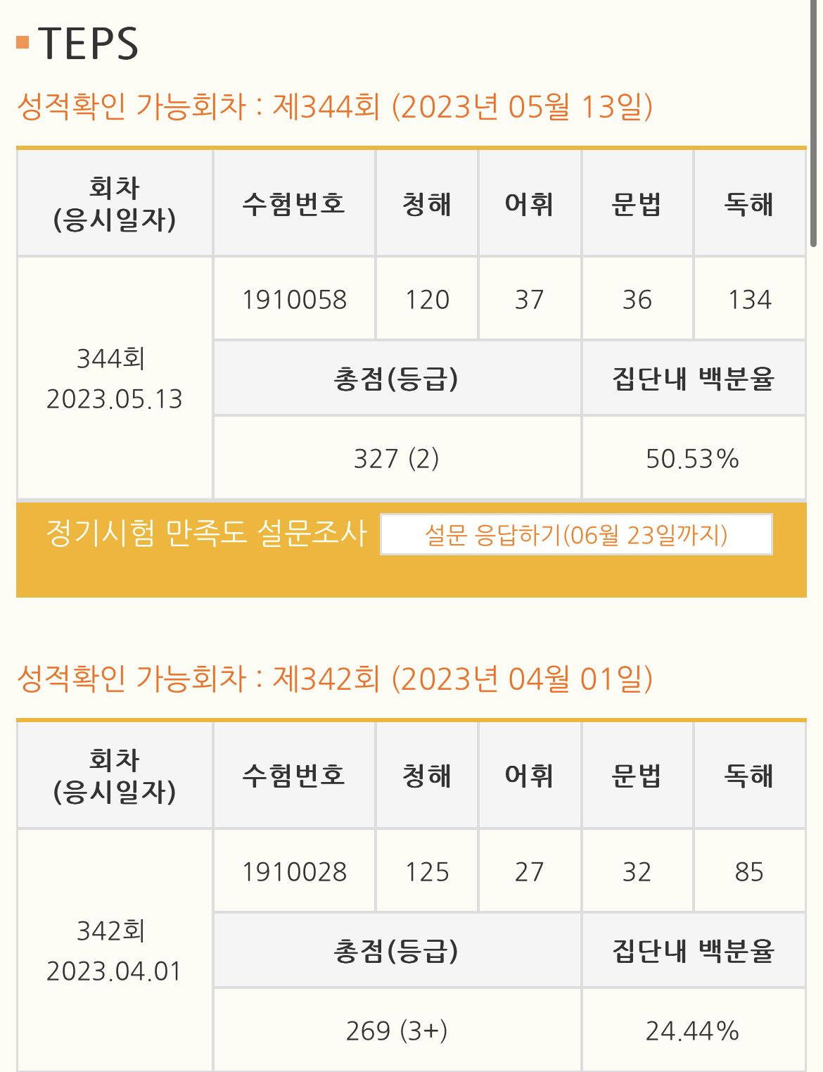 | 수강후 | 120점 | 37점 | 36점 | 134점 | 327점 |