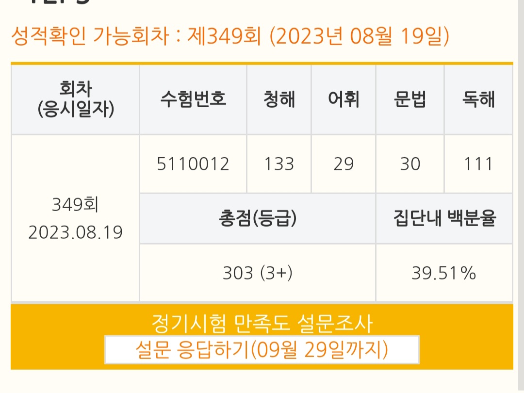 | 독해(240점) | 110점 | 111점 |