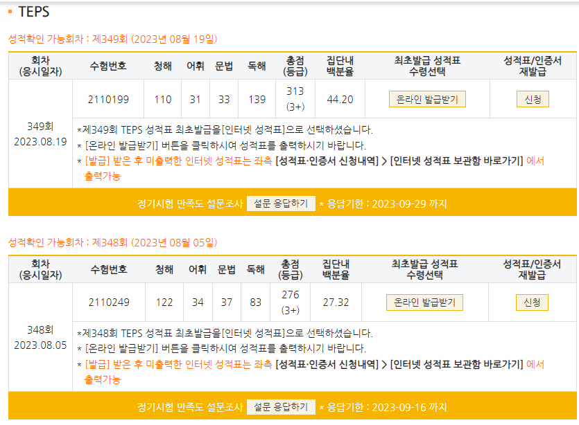 | 청해(240점) | 어휘(60점) | 문법(60점) | 독해(240점) | 총점(600점) | |
