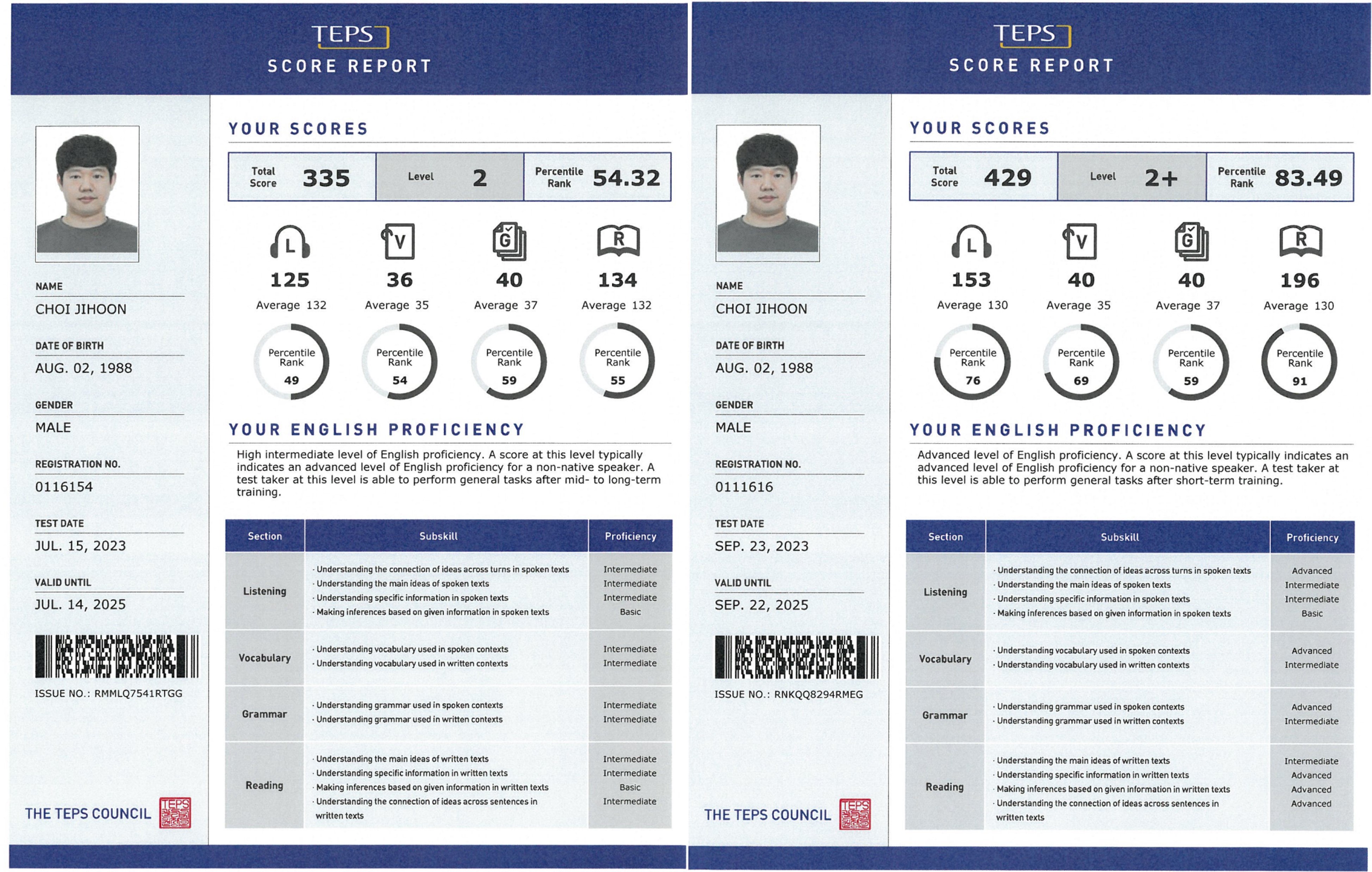 (직장인) 컨설텝스 덕분에 공부효율이 높아져 2달만에 목표 점수(387점)를 크게 상회(429점)하여 달성
