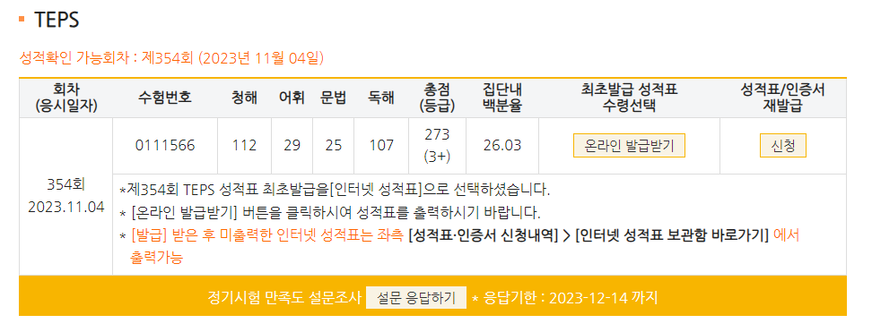 청해(240점) 어휘(60점) 문법(60점) 독해(240점) 총점(600점)