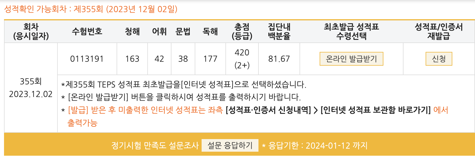 | 청해(240점) | 139점 | 163점 |