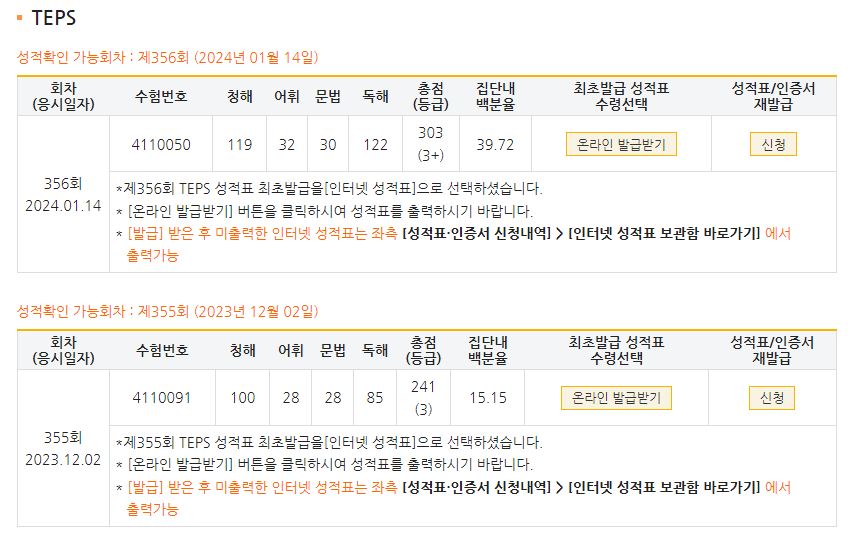 청해(240점) 어휘(60점) 문법(60점) 독해(240점) 총점(600점)
