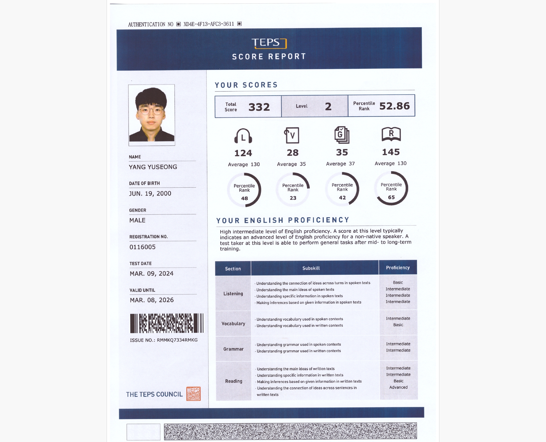 | 수강후 | 124점 | 28점 | 35점 | 145점 | 332점 |