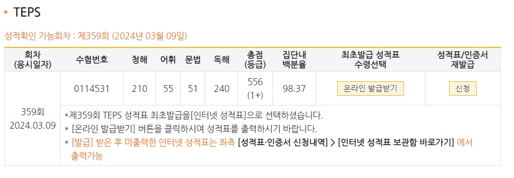 | 수강후 | 210점 | 55점 | 51점 | 240점 | 556점 |