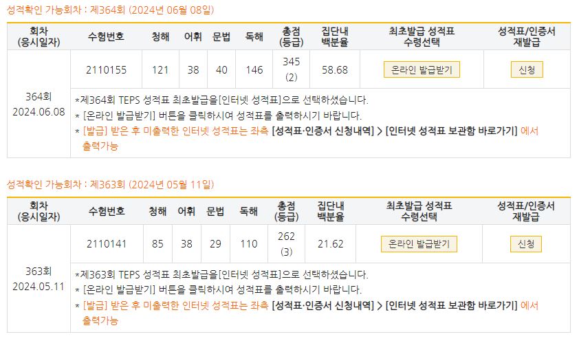 총점(600점) | 262점 | 345점 |