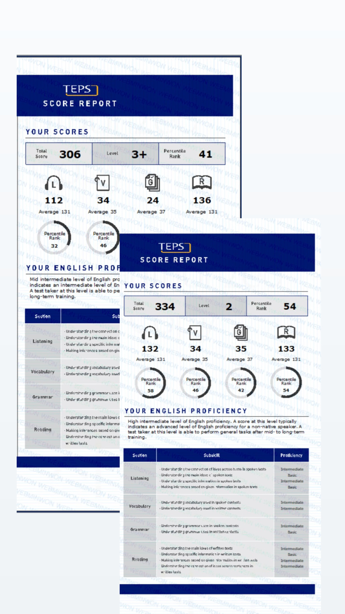 청해(240점) 어휘(60점) 문법(60점) 독해(240점) 총점(600점)
