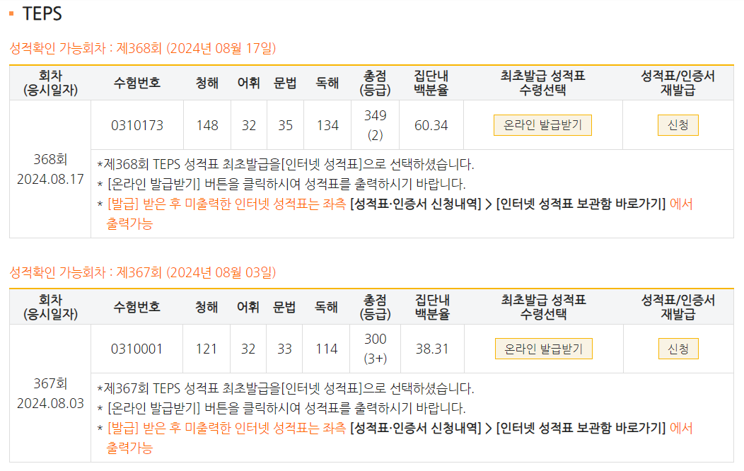 수강후 | 148점 | 32점 | 35점 | 134점 | 349점 |