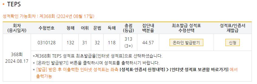 청해(240점) 어휘(60점) 문법(60점) 독해(240점) 총점(600점)