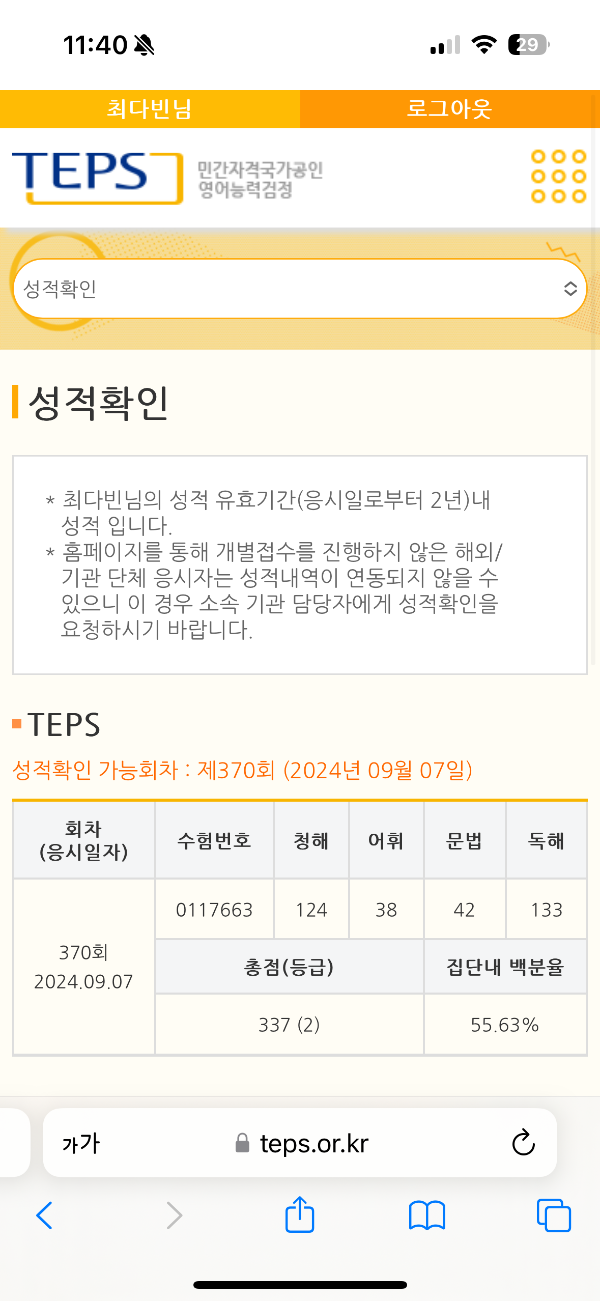 청해(240점) 어휘(60점) 문법(60점) 독해(240점) 총점(600점)