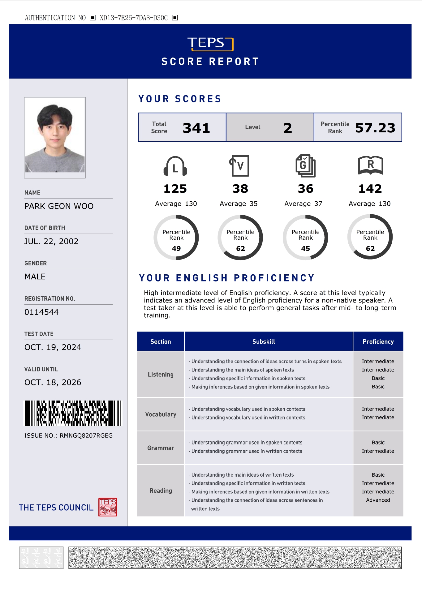 | 총점(600점) | 309점 | 341점 |