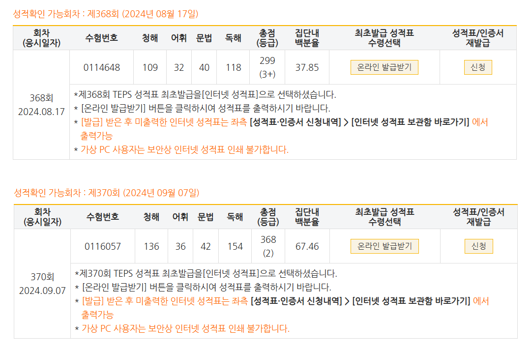 | 수강전 | 109점 | 32점 | 40점 | 118점 | 299점 |