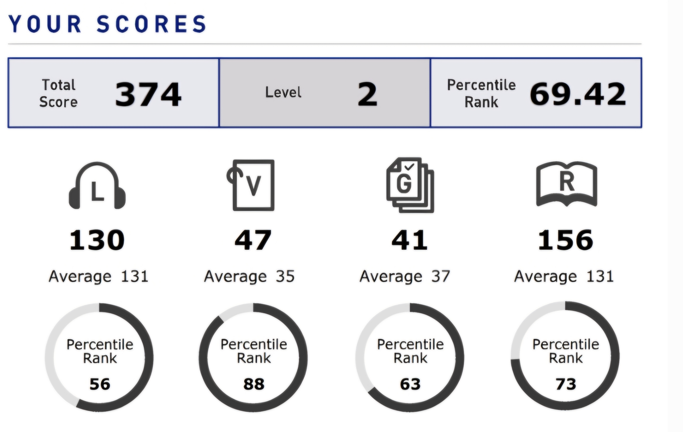 | 청해(240점) | 어휘(60점) | 문법(60점) | 독해(240점) | 총점(600점) | |
