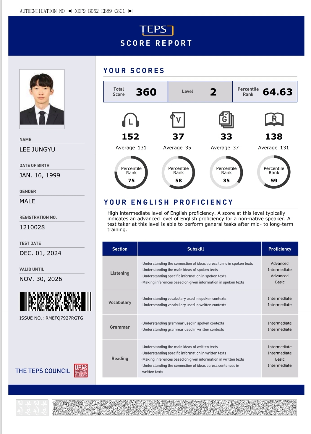 | 청해(240점) | 0점 | 152점 |