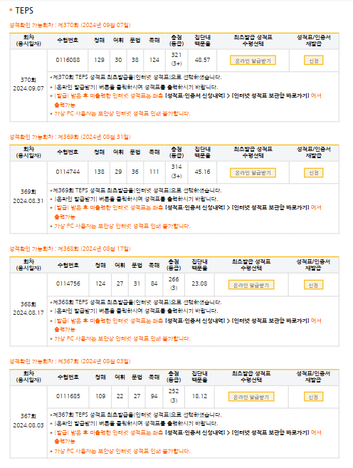청해(240점) 어휘(60점) 문법(60점) 독해(240점) 총점(600점)