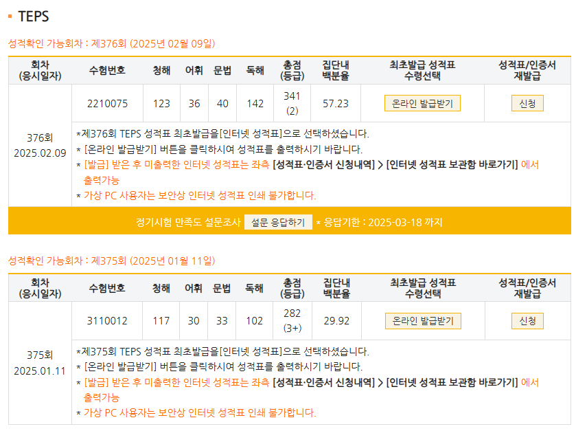 | 총점(600점) | 282점 | 341점 |
