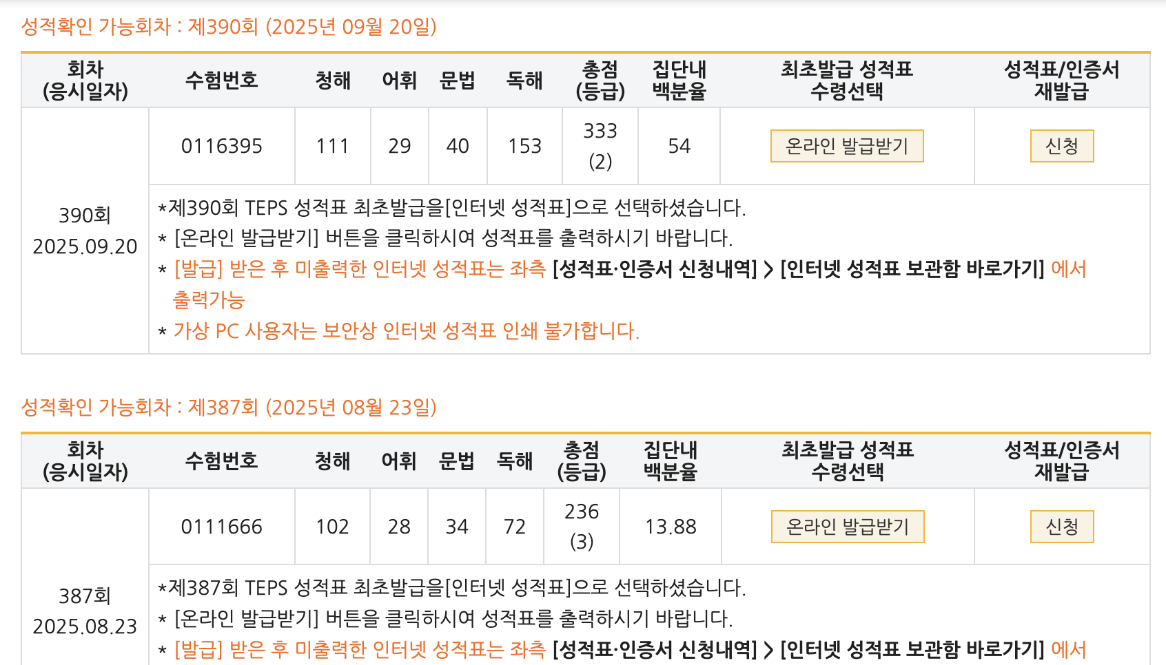 | 총점(600점) | 236점 | 333점 |