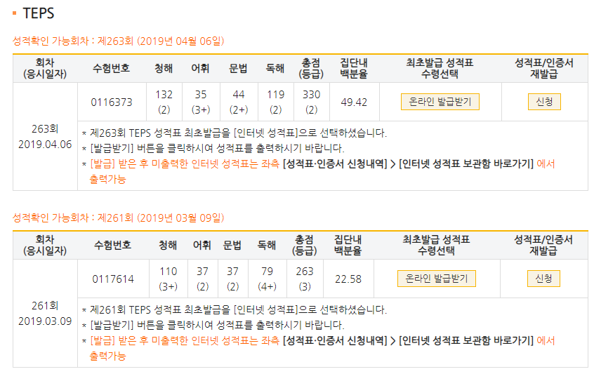 | 청해(240점) | 어휘(60점) | 문법(60점) | 독해(240점) | 총점(600점) | |