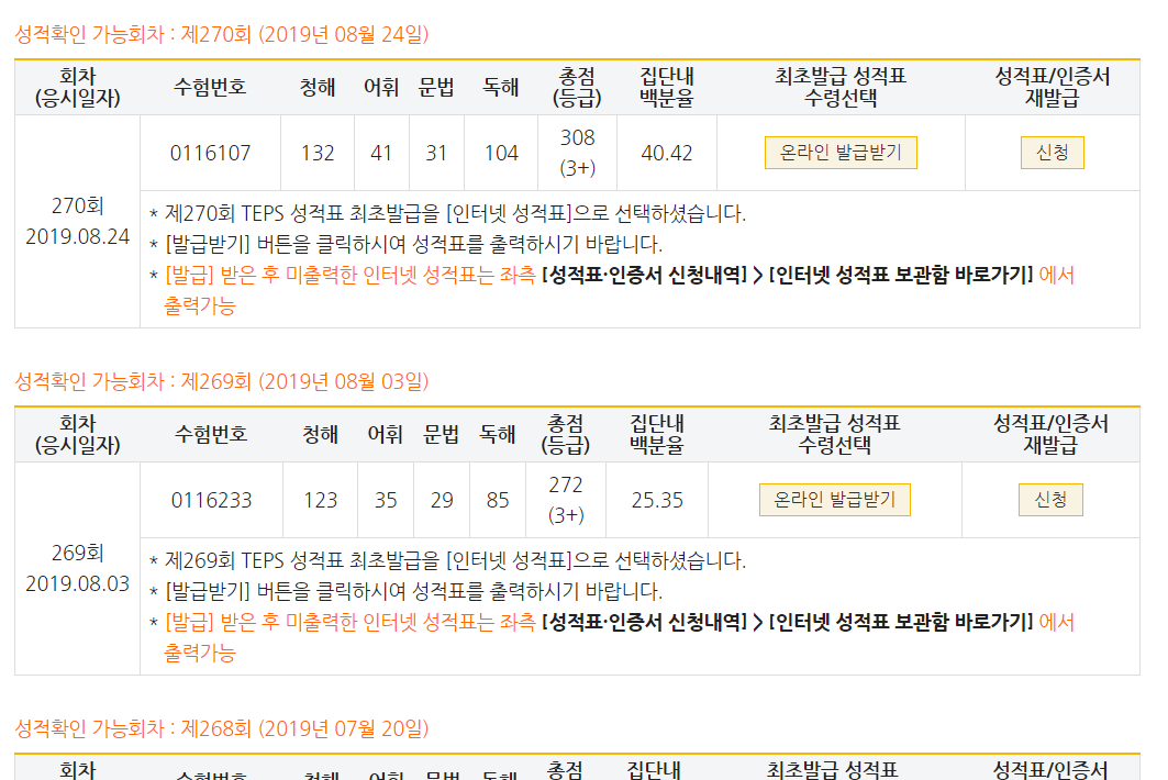 청해(240점) 어휘(60점) 문법(60점) 독해(240점) 총점(600점)