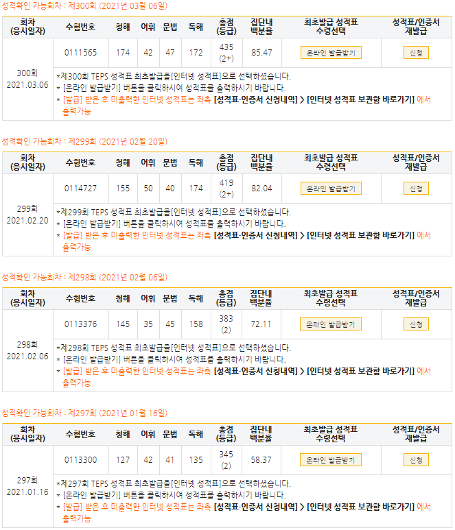 | 수강후 | 174점 | 42점 | 47점 | 172점 | 435점 |