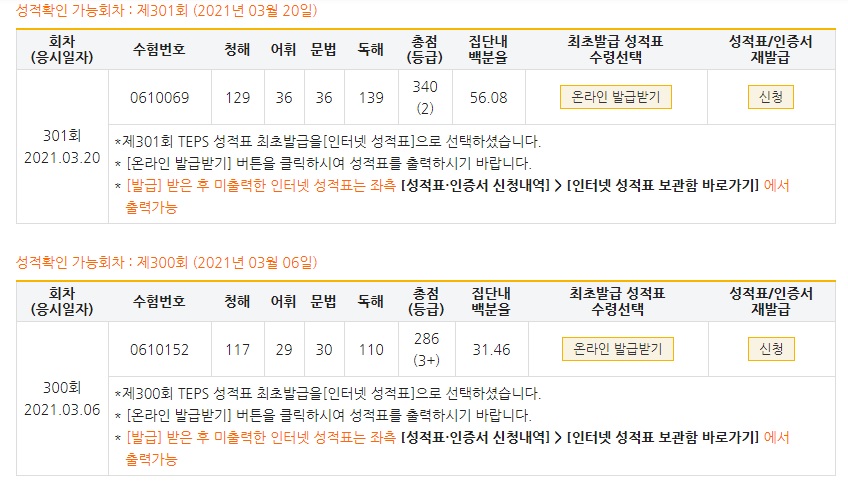 | 수강후 | 129점 | 36점 | 36점 | 139점 | 340점 |