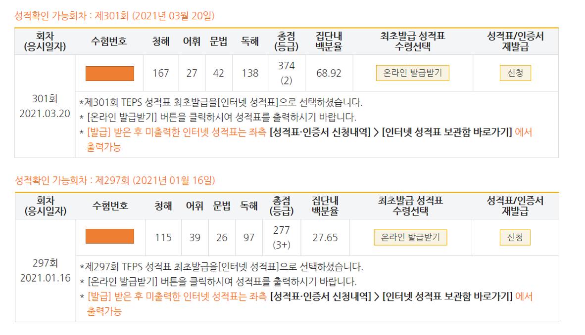 | 청해(240점) | 어휘(60점) | 문법(60점) | 독해(240점) | 총점(600점) | |