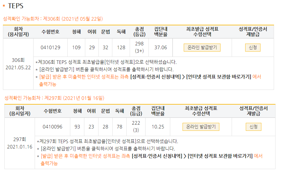 | 총점(600점) | 222점 | 298점 |