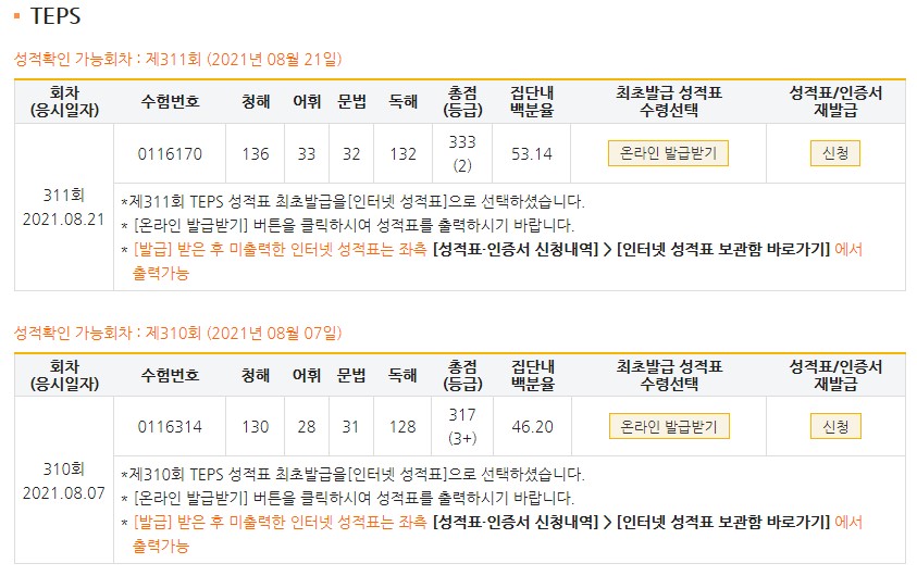 | 총점(600점) | 253점 | 333점 |