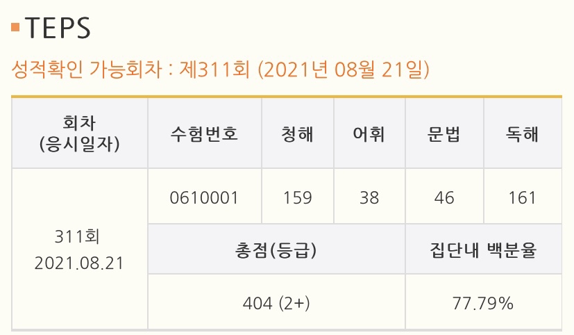 | 독해(240점) | 0점 | 161점 |