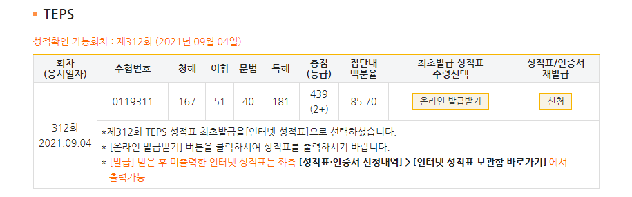 | 수강후 | 167점 | 51점 | 40점 | 181점 | 439점 |