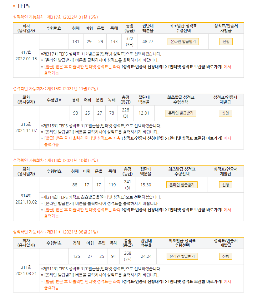 | 총점(600점) | 228점 | 322점 |